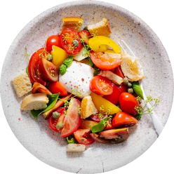Tomatoes, cucumbers, red onions, Kalamata olives, feta, oregano.